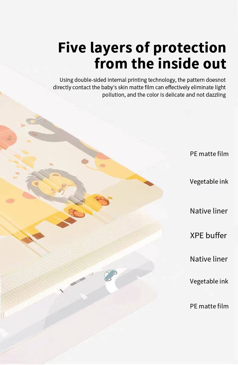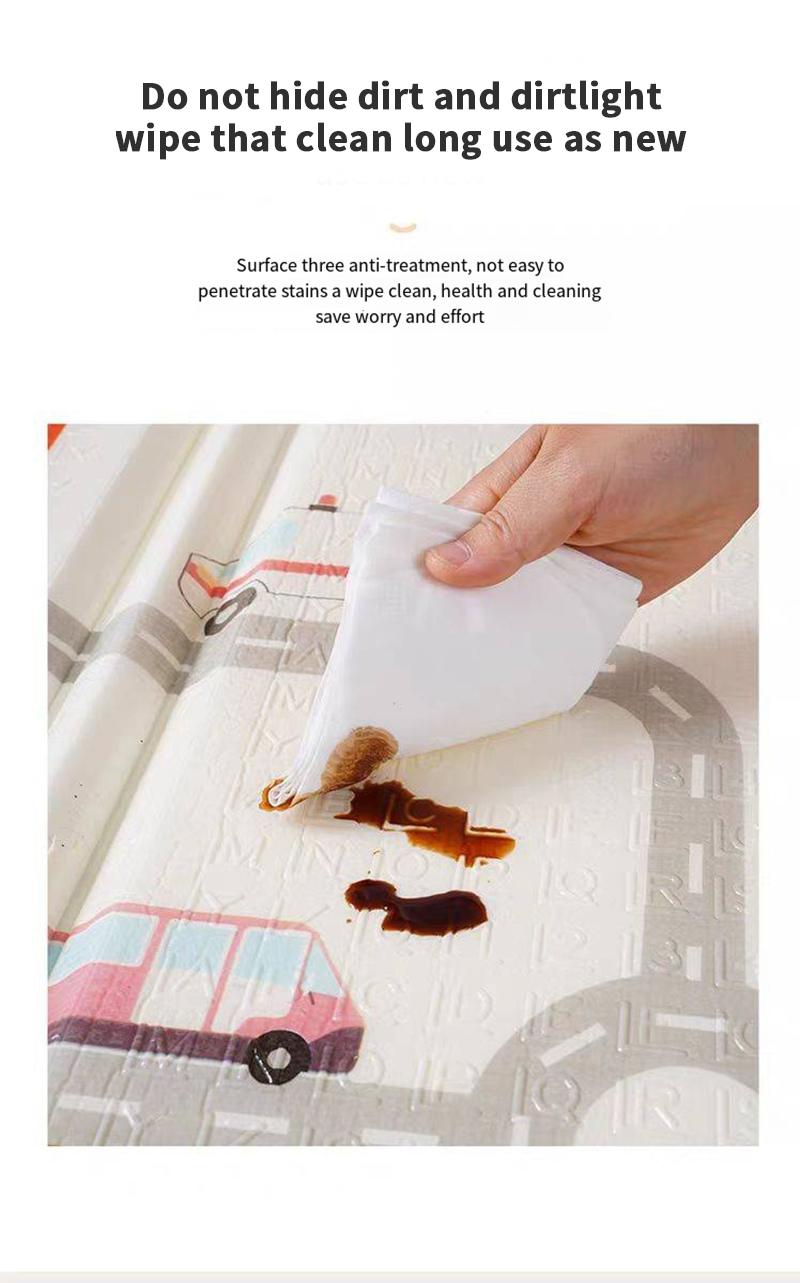 এক্সপিই পরিবারের ভাঁজ মডেল ম্যাট ফিল্ম ফ্লোর ম্যাটগুলি পিই ম্যাট ফিল্মে মুদ্রিত হয়, ম্যাট ফিল্ম কার্যকরভাবে হালকা দূষণ দূর করতে পারে এবং সূক্ষ্ম রঙ কঠোর নয়। সময় এবং স্থান সংরক্ষণ করে এটি দ্রুত ভাঁজ করা যায়